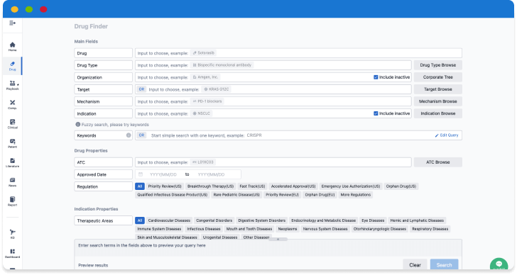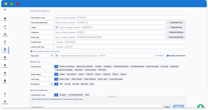 我们先进的临床结果搜索功能,使用多个过滤器、如试验药、申办/合作机构、对照药、靶点、适应症、治疗领域、登记号、试验代号、指标、人数等,可以快速地查找出需要的结果信息